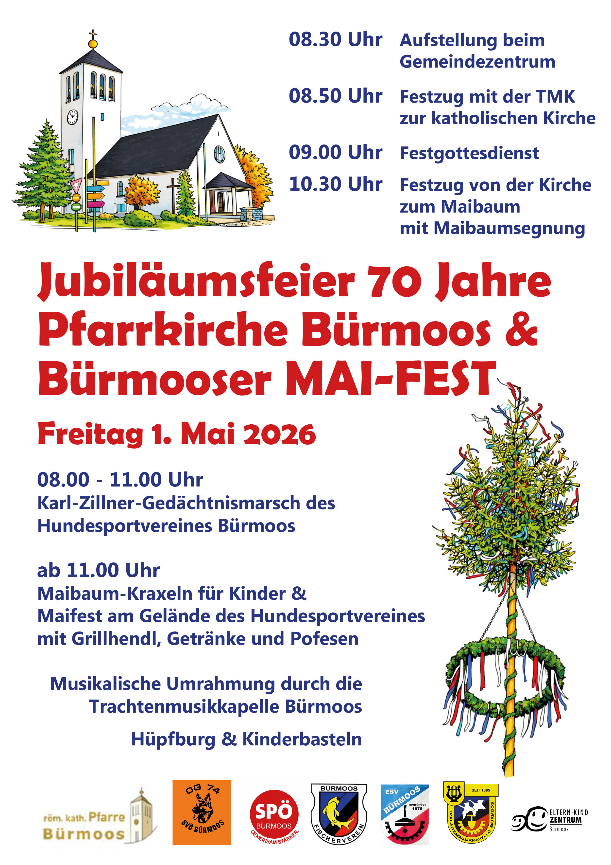 Die Katholische Pfarrkirche in Bürmoos ist - für einen Industrieort und das Entstehungsjahr überaus passend - dem Heiligen Josef der Arbeiter gewidmet. Josef von Nazareth, der Ziehvater von Jesus, war in der biblischen überlieferung handwerklich t tig und gilt so traditionell als Patron der Arbeiter, insbesondere der Zimmerleute und Holzf ller.
